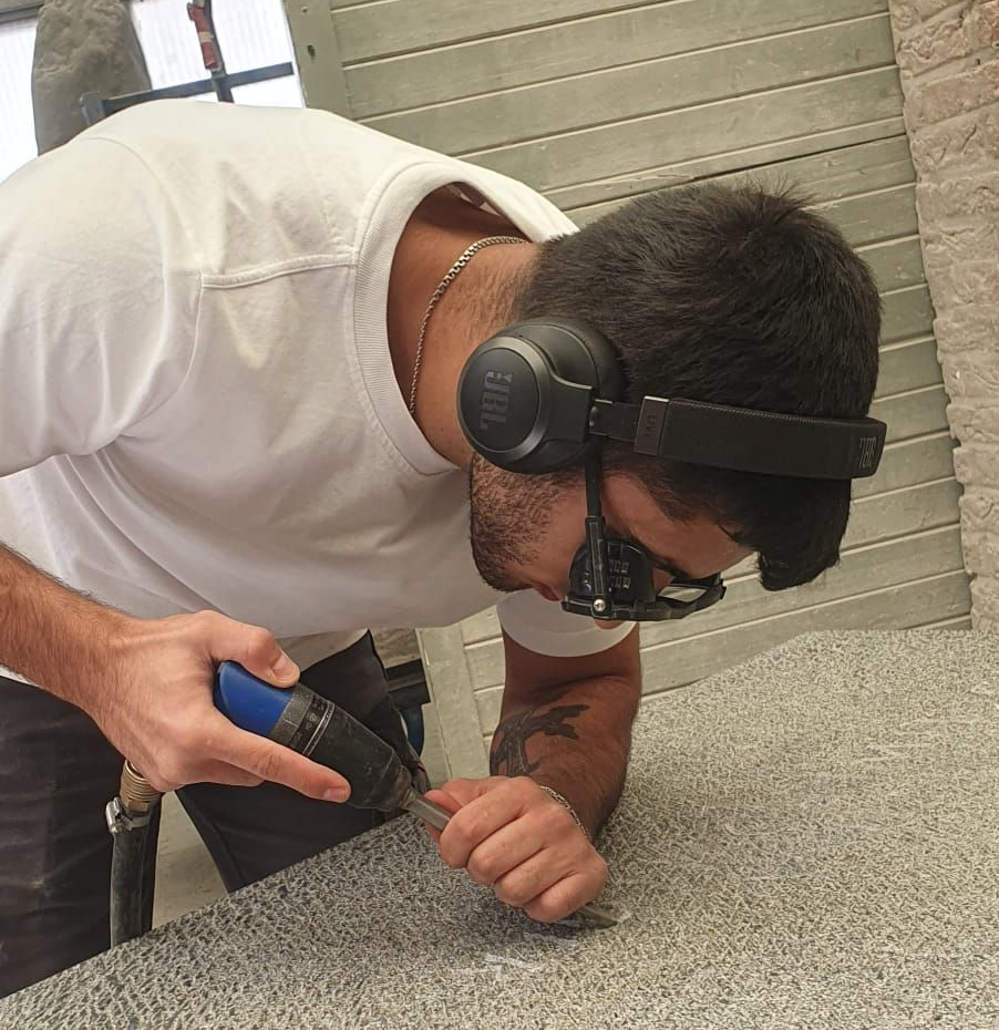 Als Nachwuchs begrüßen wir nun auch Tochter Victoria Kuhn. 2019 startete sie die Ausbildung zur Steinbildhauerin und kann nun, 6 Jahre später, 3 verschiedene Abschlüsse vorzeigen. Den staatlich geprüften Steintechniker und Gestalter (Bachelor professional of Steintechnik / Gestalter) wie auch den Meistertitel.